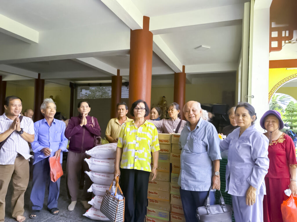 Trước đó, vào ngày mùng 8 tháng 8 Âm lịch, chùa Long Hoa cũng đã phát 30 phần quà đến đạo tràng Tụng kinh Địa Tạng hằng tháng tại chùa, như một nghĩa cử nhỏ gửi trao yêu thương – trẻ vui trăng sáng, người già lòng cũng nở hoa.
