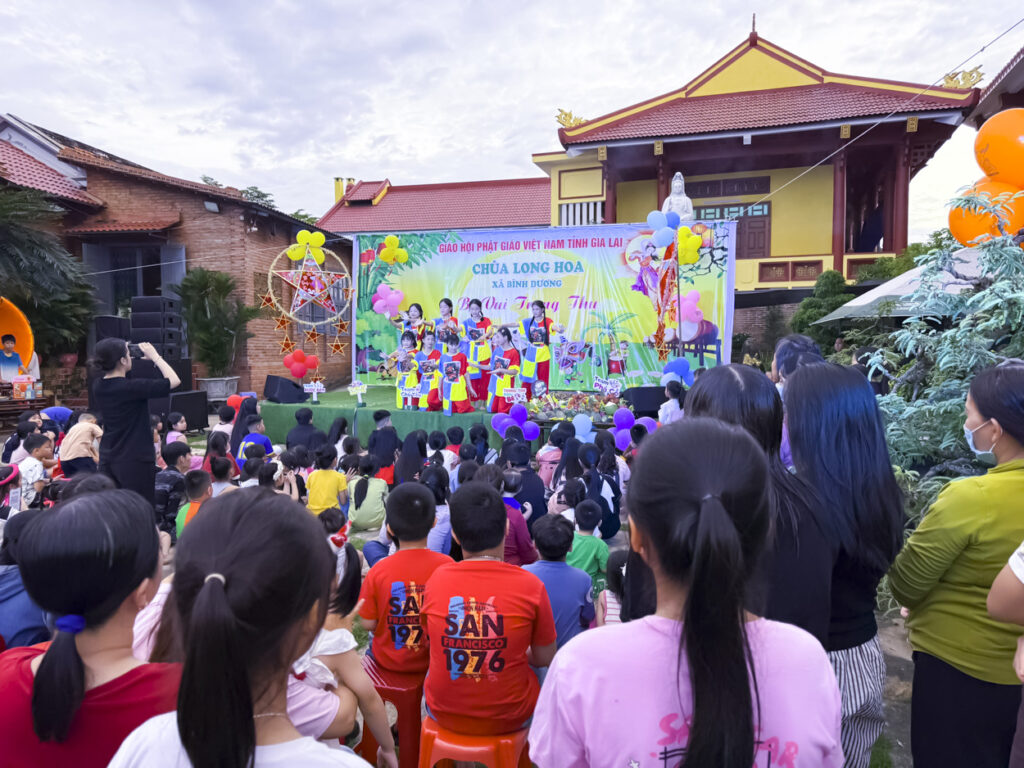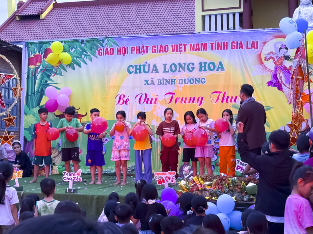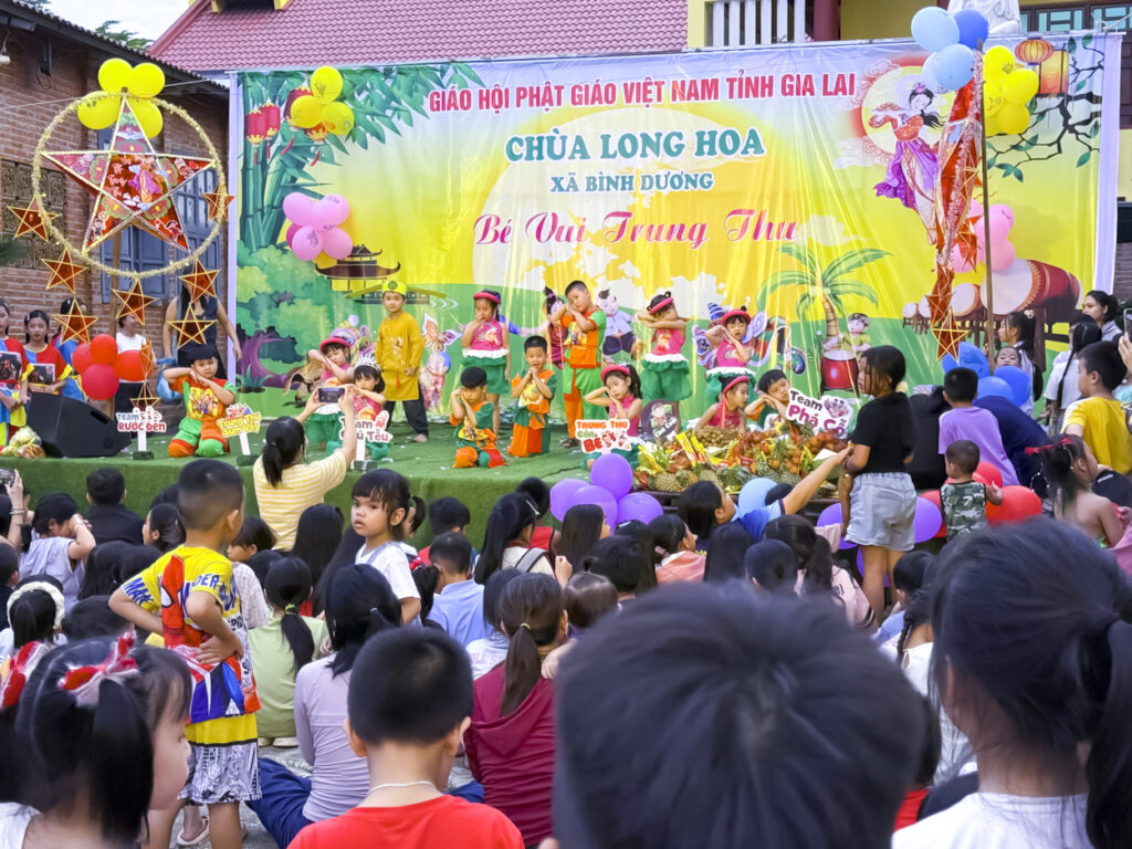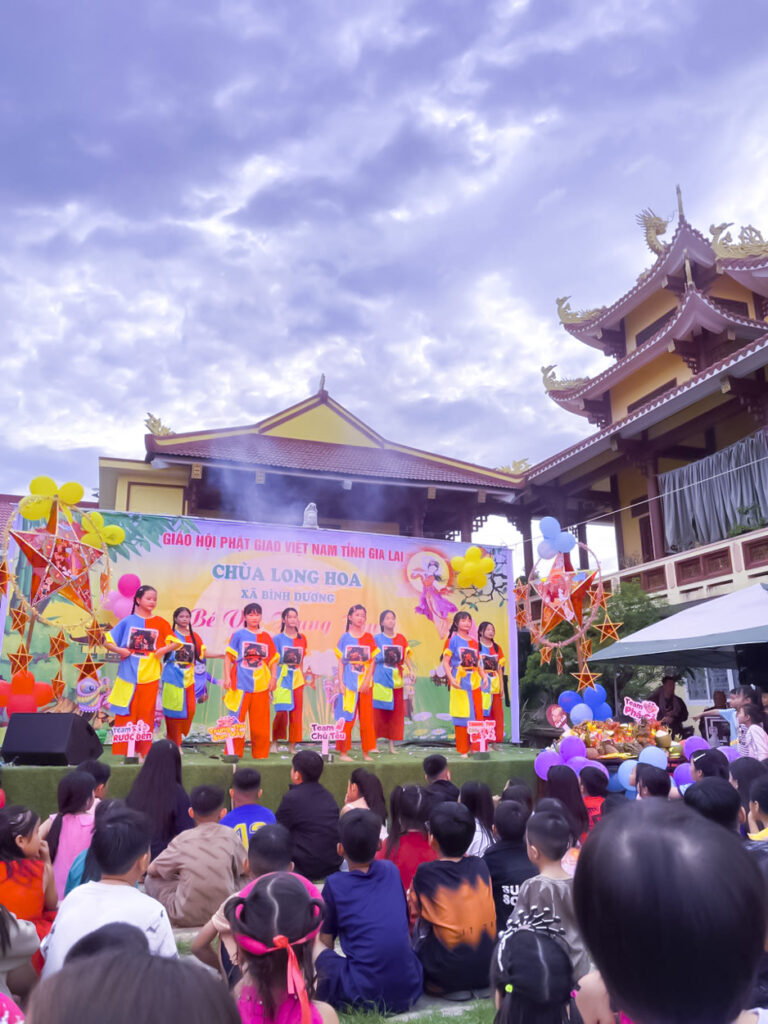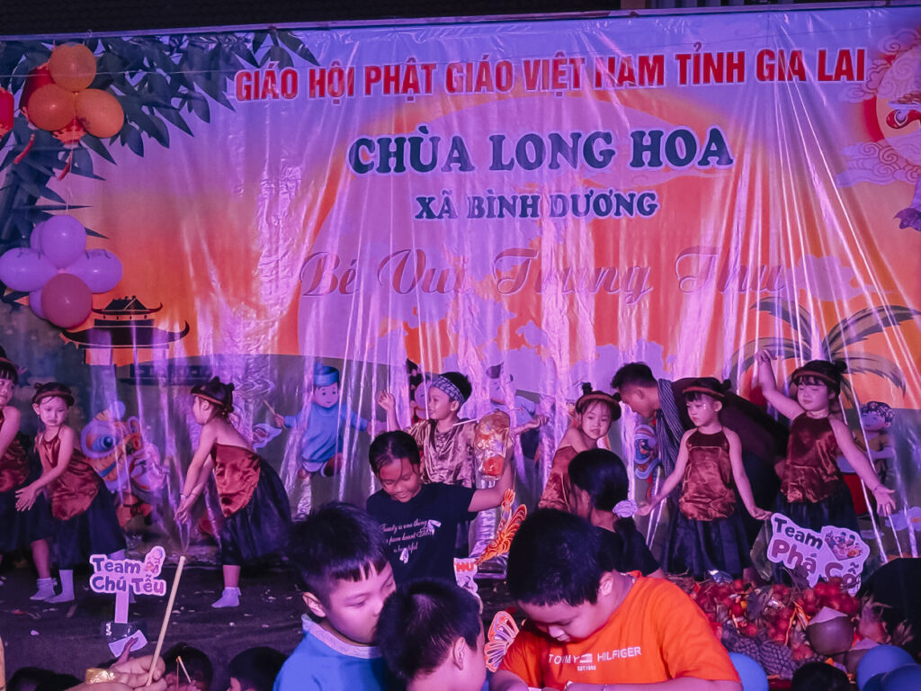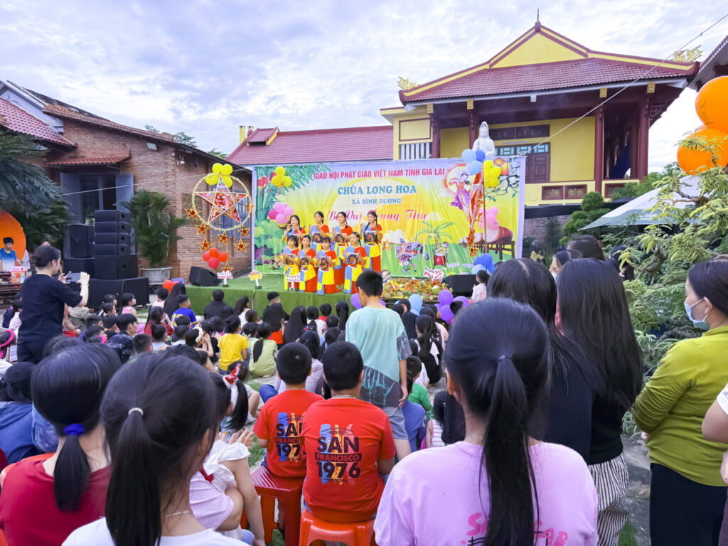 Ngày 14 tháng 8 Âm lịch, trong không khí rộn ràng của mùa trăng tròn tháng Tám, chùa Long Hoa đã tổ chức đêm hội “Bé vui Trung thu” dành cho các em nhỏ trên địa bàn xã Bình Dương.